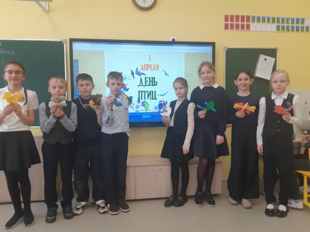 1 апреля – международный день птиц. В преддверии события, учителем изобразительного искусства Кальсиной Е.Д был оформлен тематический стенд с рисунками. Для украшения стенда учащиеся 3 «Б» класса вместе с учителем Темнорусовой Н.А. сделали сувениры «Птички-невелички». Сотрудниками библиотеки ДК имени Ленина создана виртуальная книжная выставка. Материалы выставки размещены в чатах учащихся 1-4 классов на платформе «Сферум».
