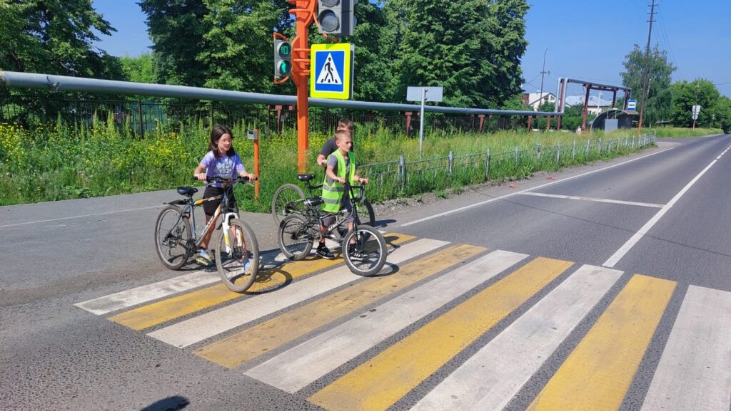 пешеходный переход с велосипедом. На мастер-классе «Правильно переходим дорогу»